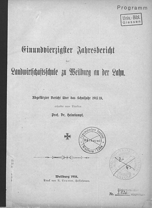 Jahresbericht der Landwirtschaftsschule zu Weilburg a. d. Lahn