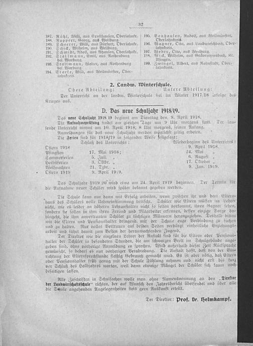 Jahresbericht der Landwirtschaftsschule zu Weilburg a. d. Lahn