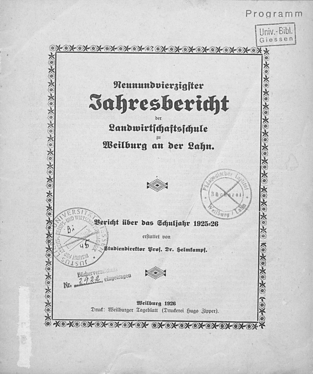 Jahresbericht der Landwirtschaftsschule zu Weilburg a. d. Lahn