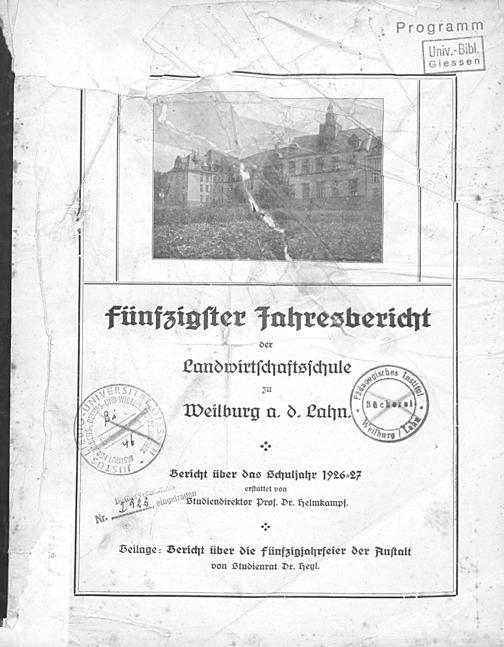 Jahresbericht der Landwirtschaftsschule zu Weilburg a. d. Lahn