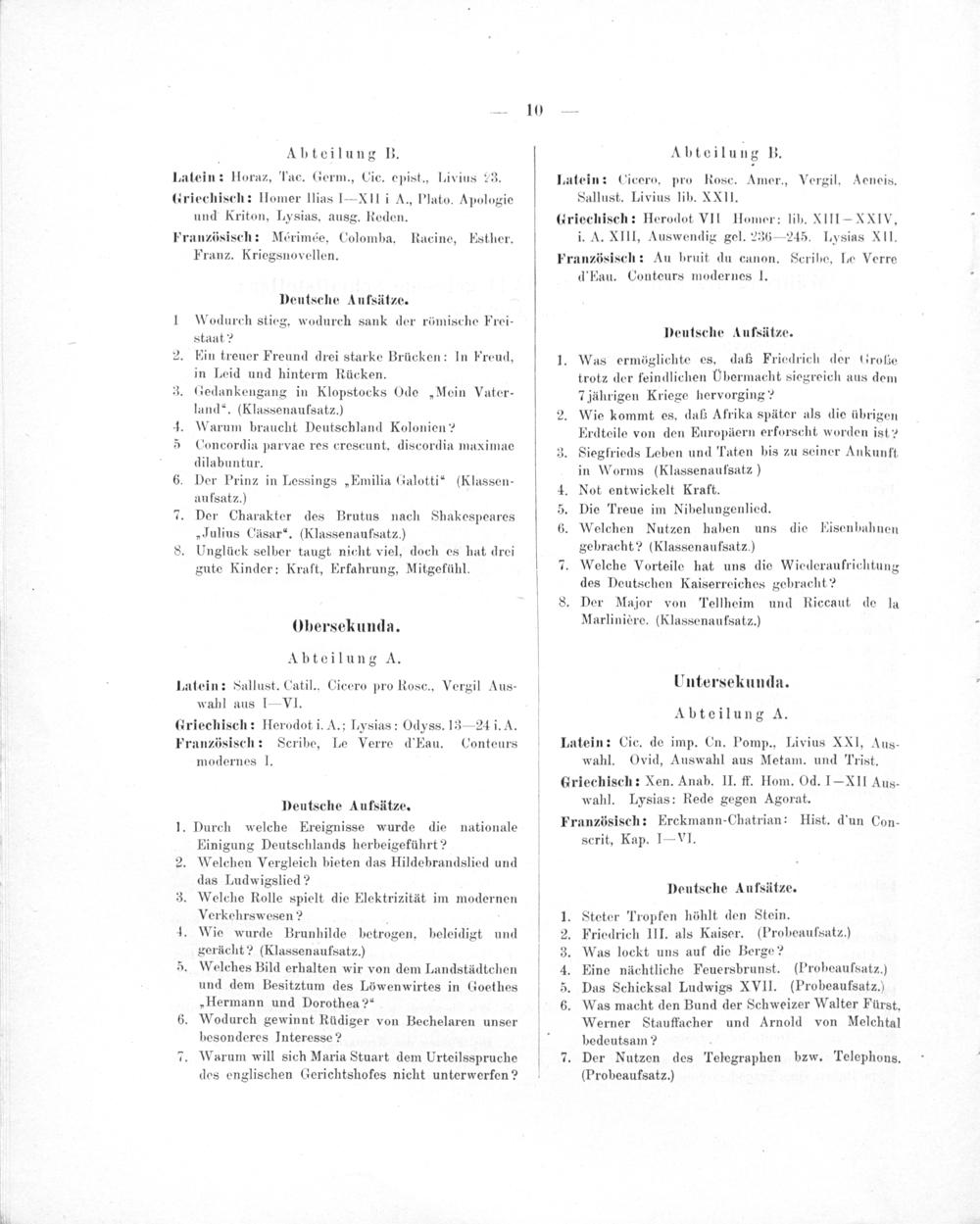 Kurzer Lehrplan für den lateinischen Unterricht