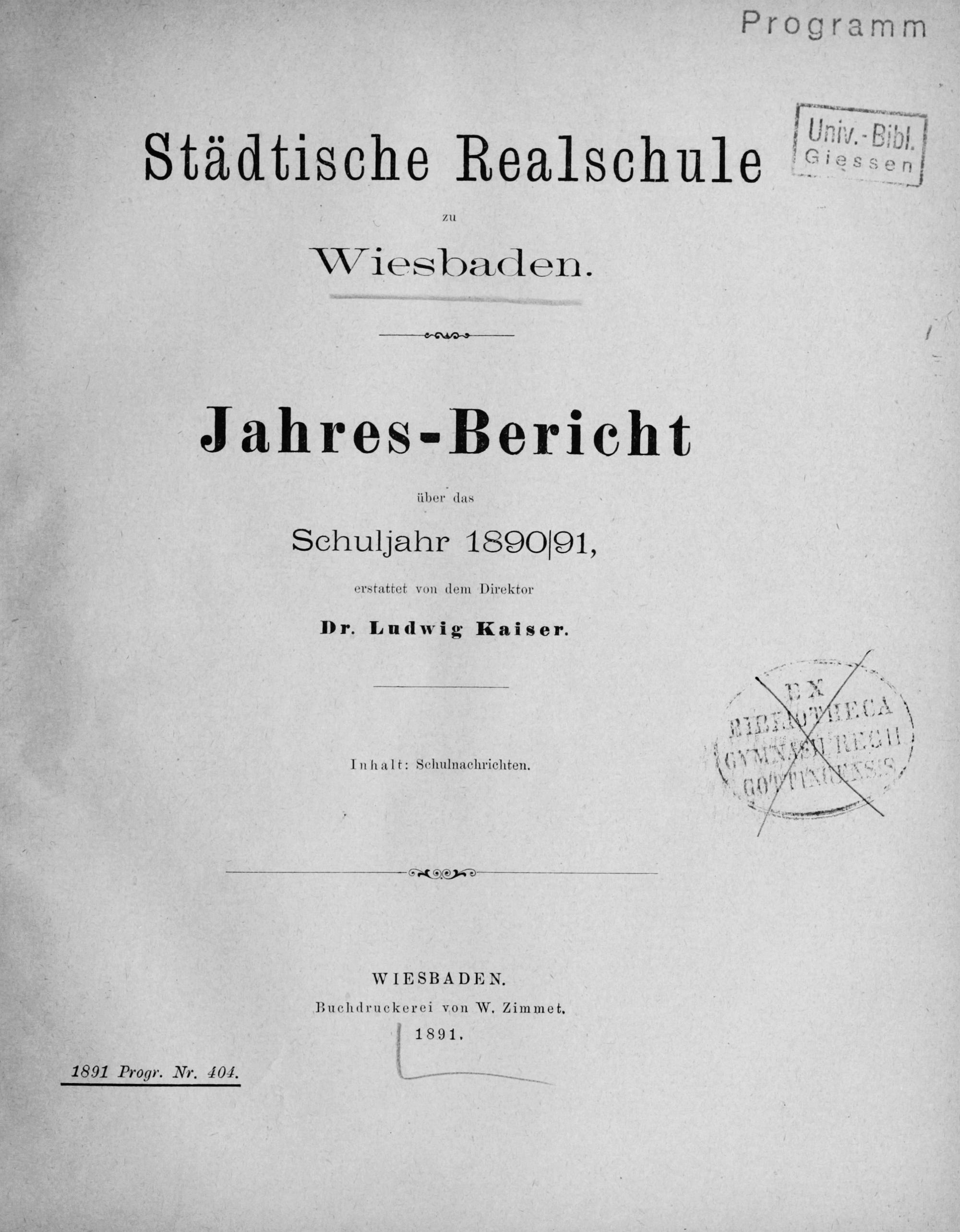 Jahresbericht der Städtischen Realschule zu Wiesbaden