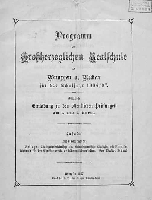 Jahresbericht der Hessischen Realschule zu Wimpfen am Neckar für das Schuljahr ...