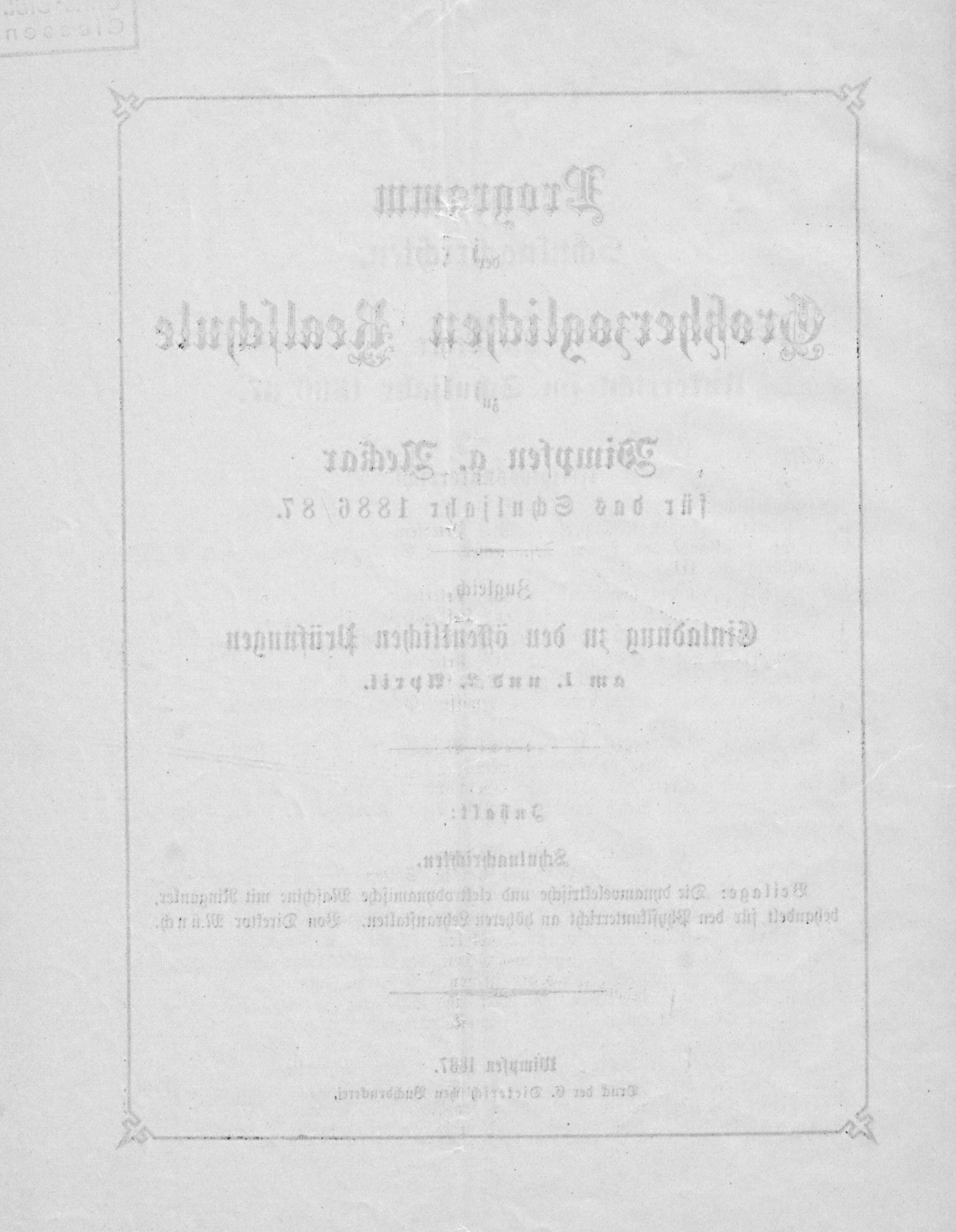 Jahresbericht der Hessischen Realschule zu Wimpfen am Neckar für das Schuljahr ...