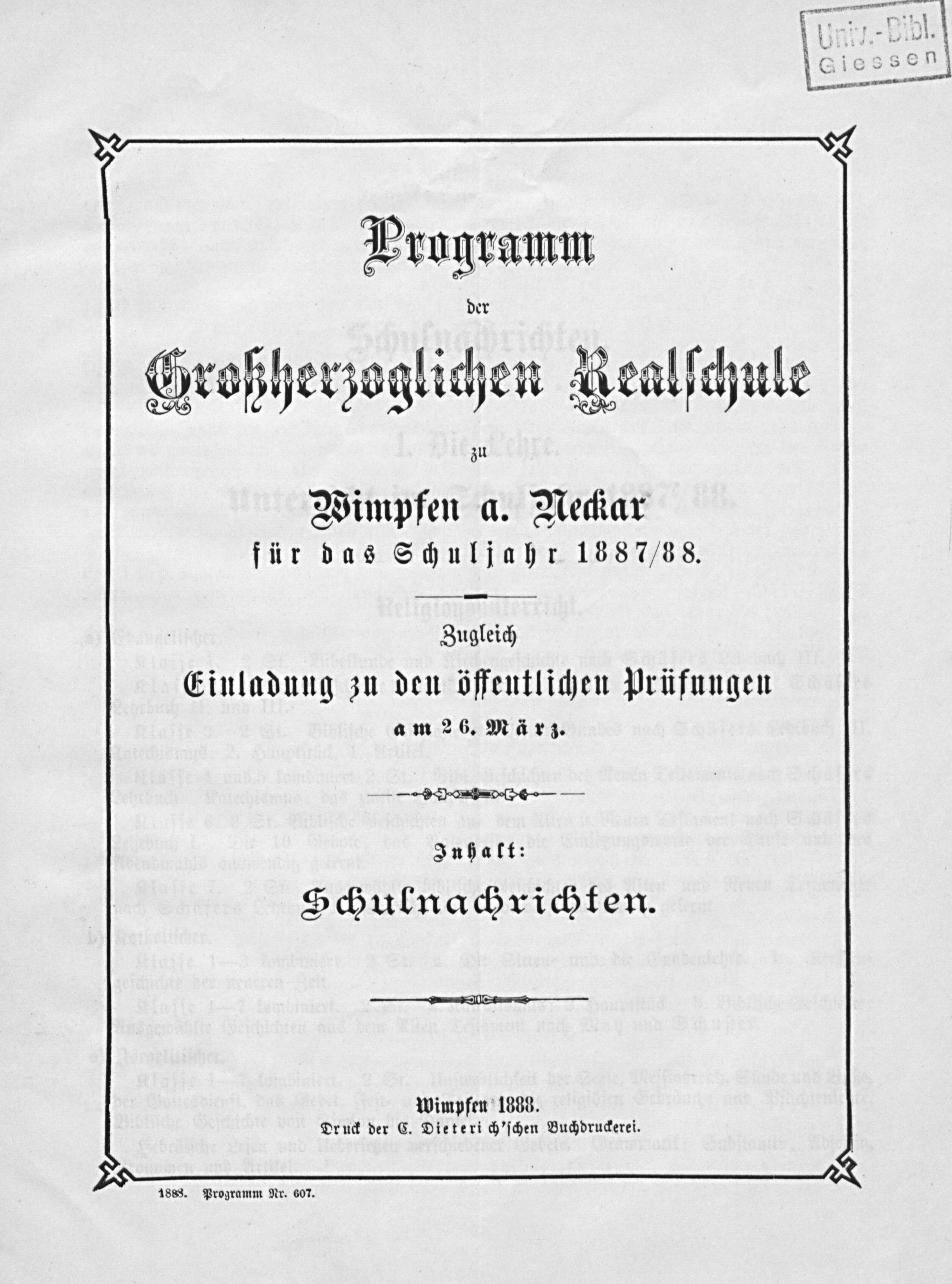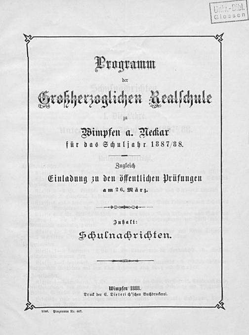 Jahresbericht der Hessischen Realschule zu Wimpfen am Neckar für das Schuljahr ...