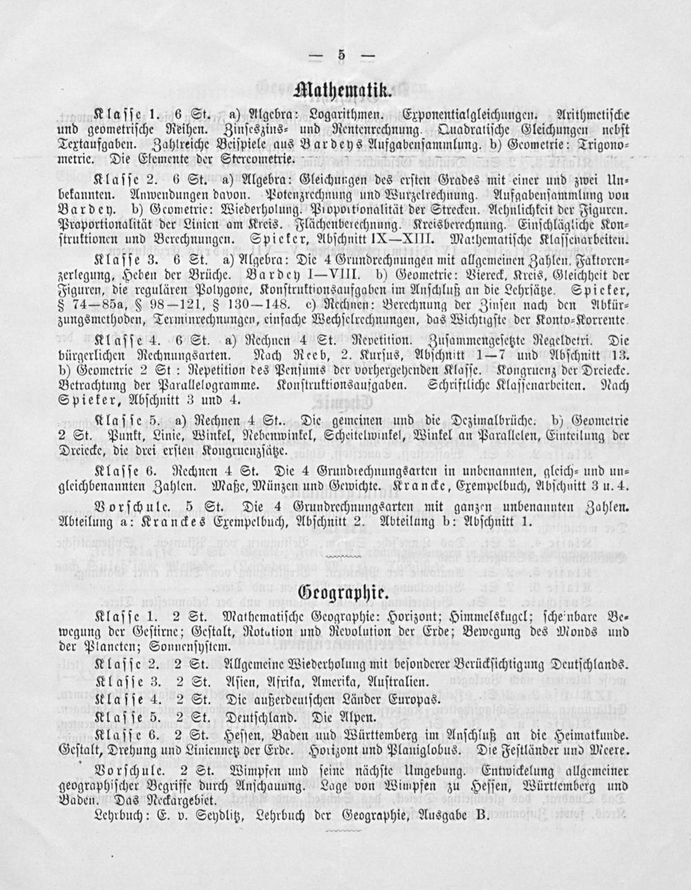 Jahresbericht der Hessischen Realschule zu Wimpfen am Neckar für das Schuljahr ...