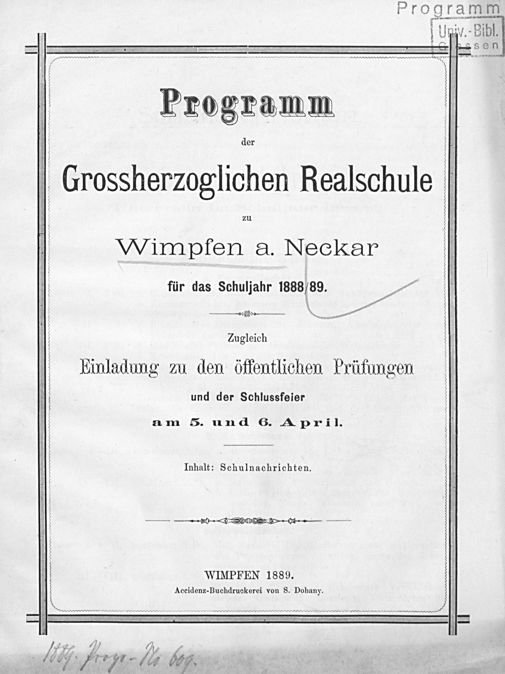Jahresbericht der Hessischen Realschule zu Wimpfen am Neckar für das Schuljahr ...