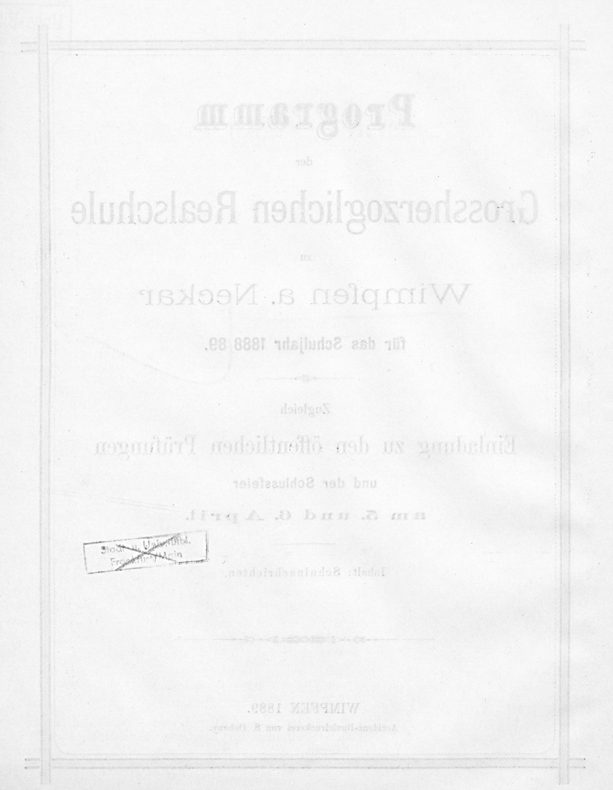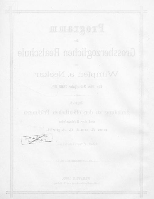 Jahresbericht der Hessischen Realschule zu Wimpfen am Neckar für das Schuljahr ...