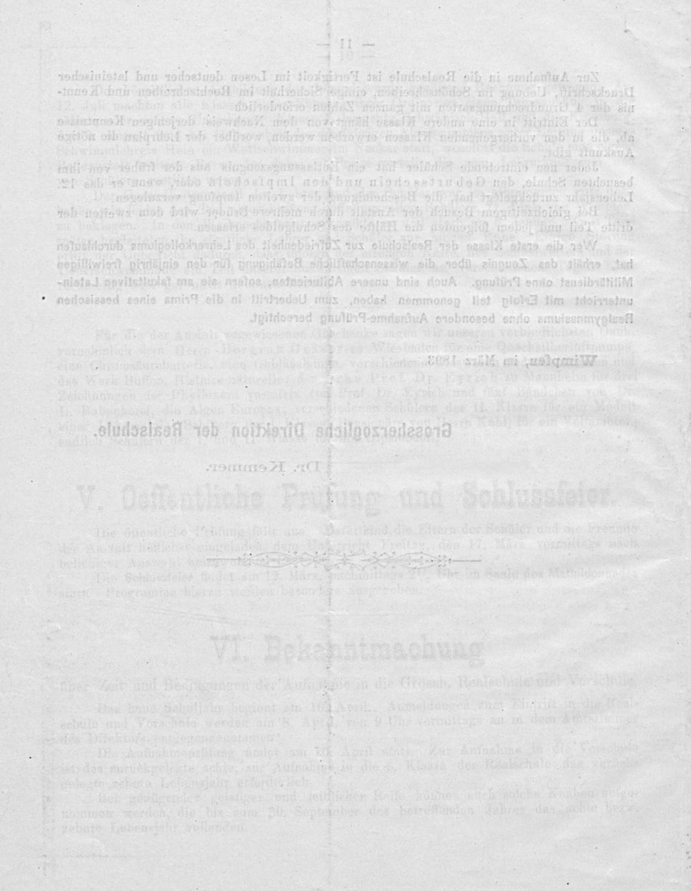Jahresbericht der Hessischen Realschule zu Wimpfen am Neckar für das Schuljahr ...