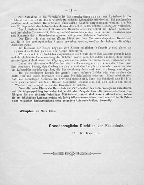 Jahresbericht der Hessischen Realschule zu Wimpfen am Neckar für das Schuljahr ...