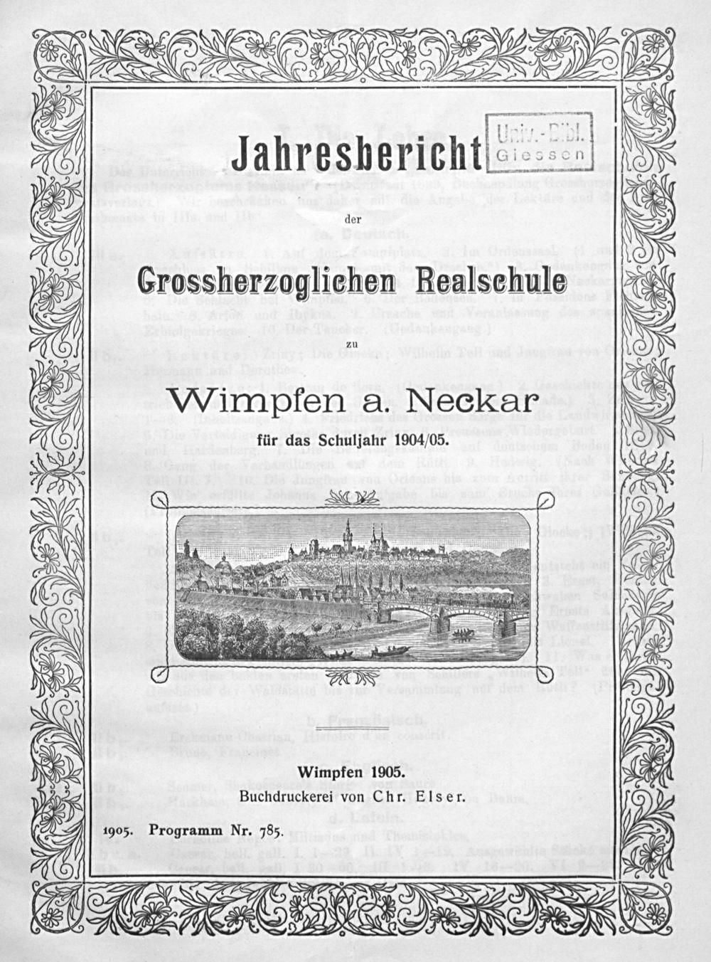 Jahresbericht der Hessischen Realschule zu Wimpfen am Neckar für das Schuljahr ...