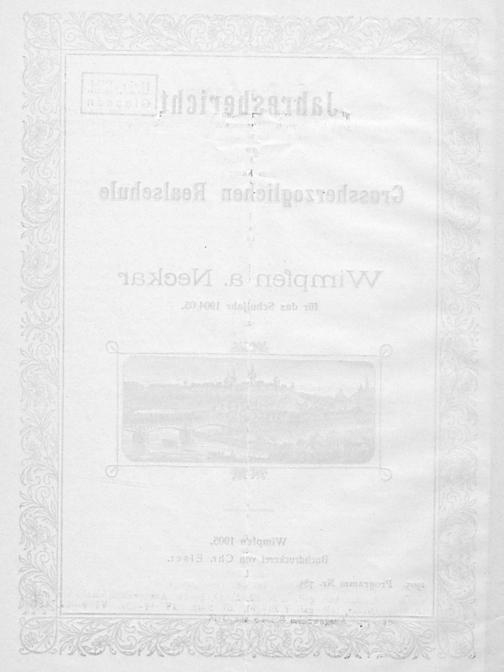 Jahresbericht der Hessischen Realschule zu Wimpfen am Neckar für das Schuljahr ...