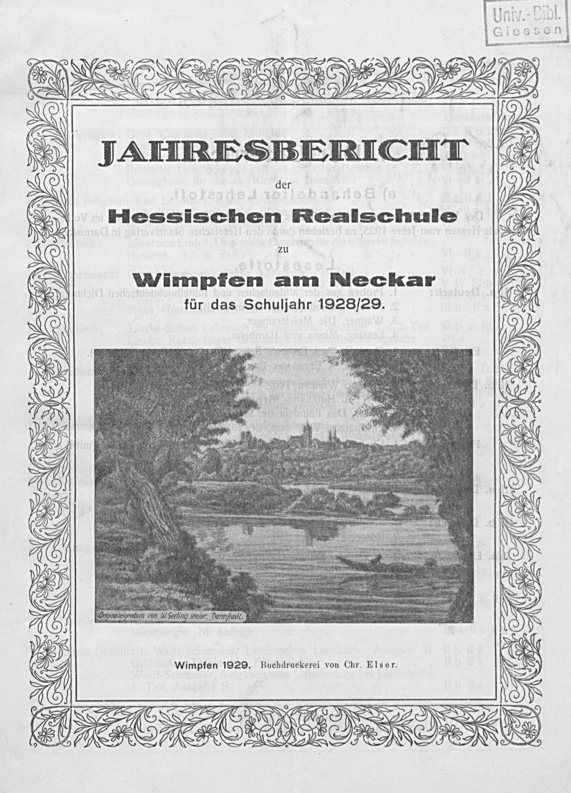 Jahresbericht der Hessischen Realschule zu Wimpfen am Neckar für das Schuljahr ...