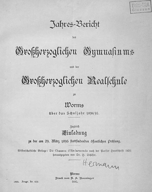 Jahresbericht des Großherzoglichen Gymnasiums und der Großherzoglichen Realschule zu Worms