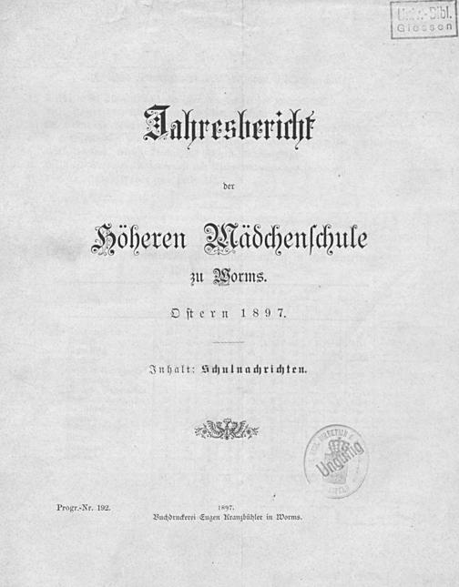 Jahresbericht der Höheren Mädchenschule zu Worms