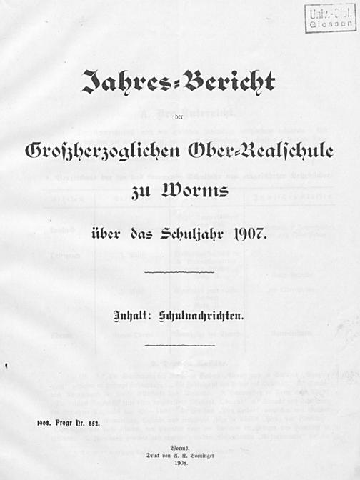 Jahres-Bericht der Großherzoglichen Oberrealschule zu Worms