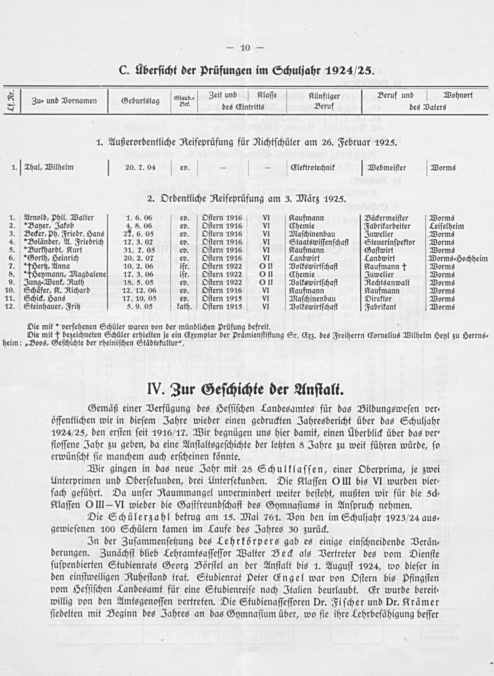 Jahres-Bericht der Hessischen Oberrealschule zu Worms über das Schuljahr ...