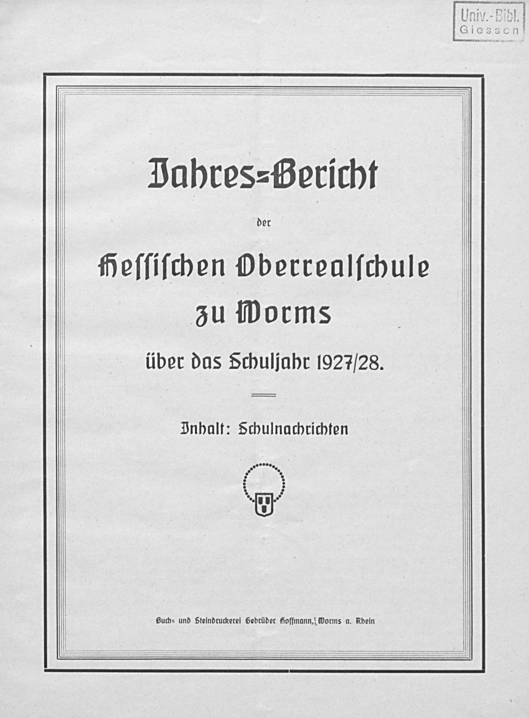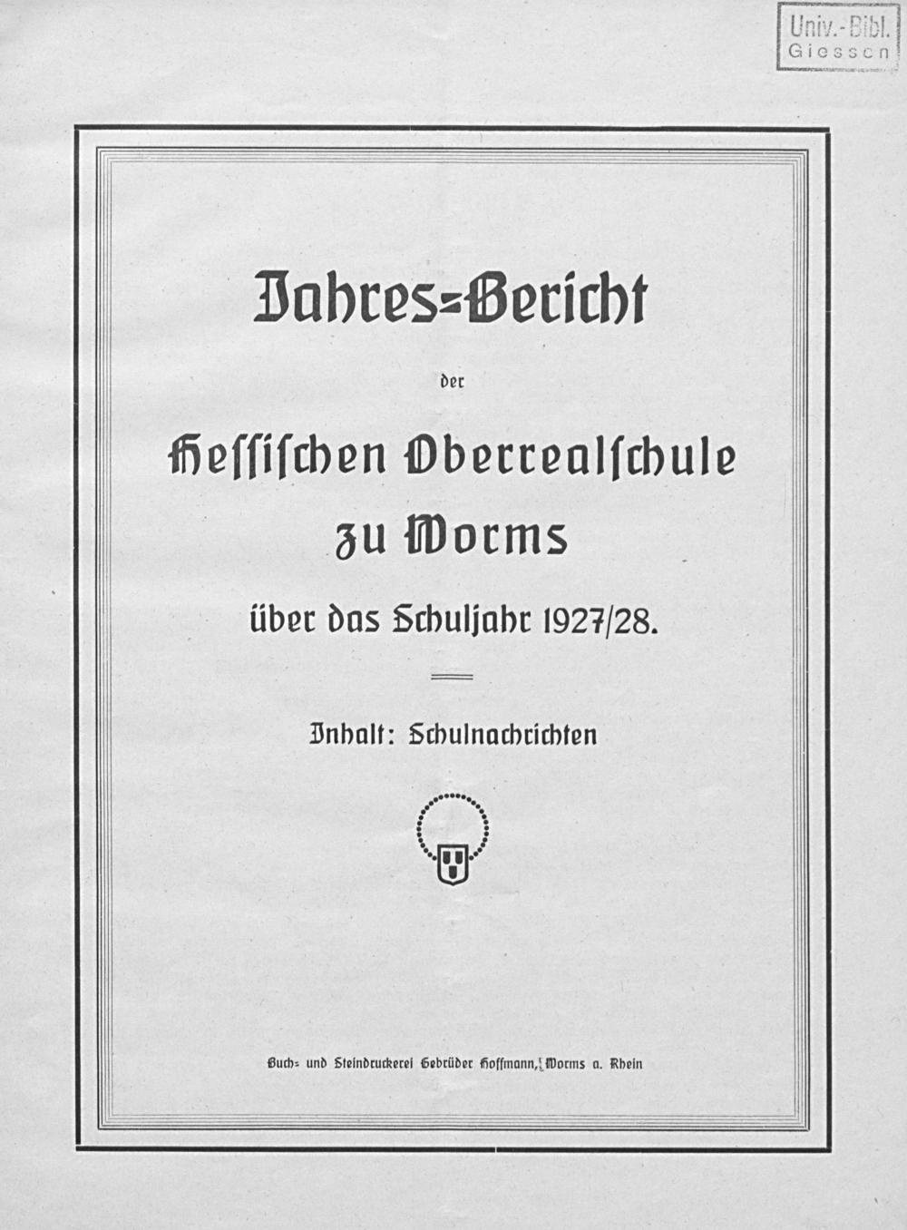 Jahres-Bericht der Hessischen Oberrealschule zu Worms über das Schuljahr ...