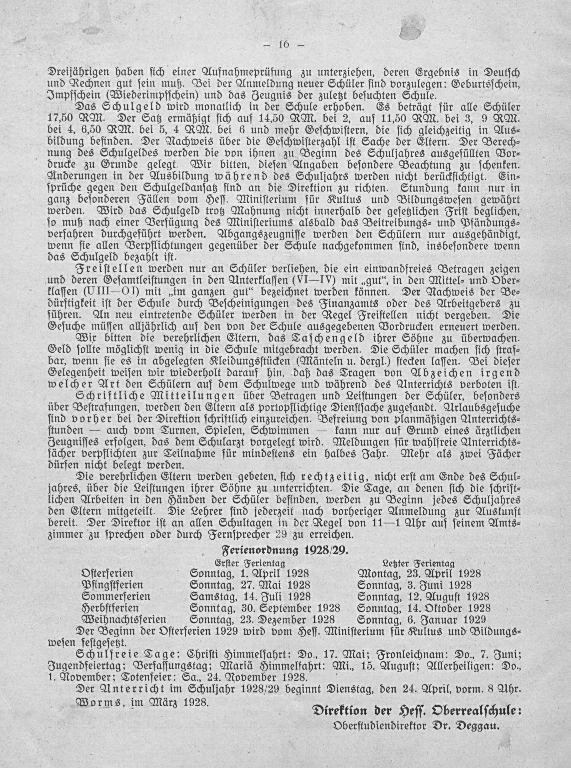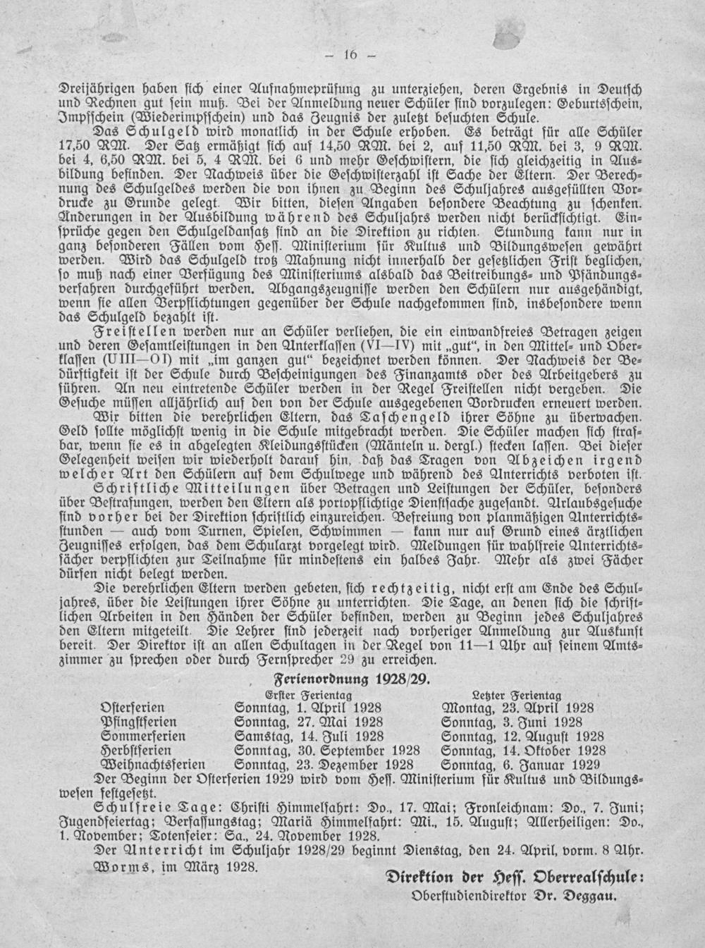 Jahres-Bericht der Hessischen Oberrealschule zu Worms über das Schuljahr ...