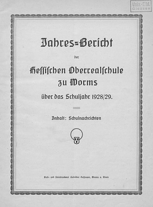 Jahres-Bericht der Hessischen Oberrealschule zu Worms über das Schuljahr ...