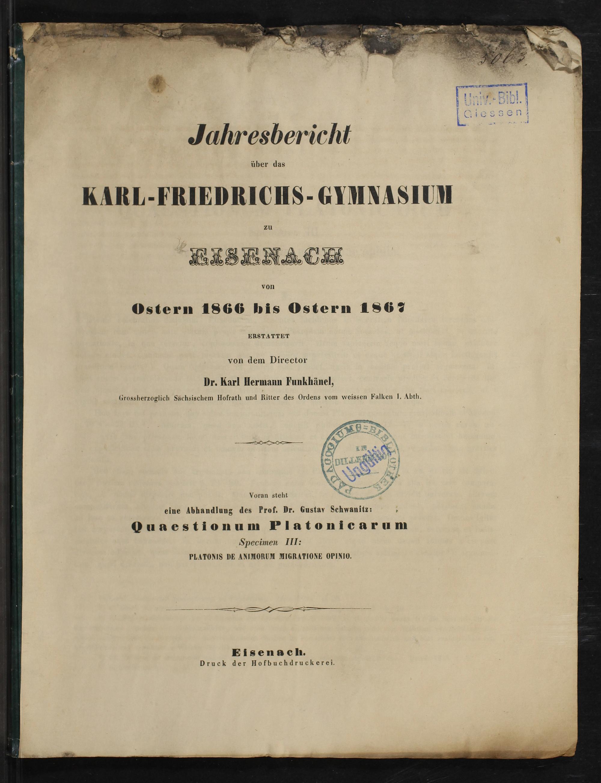 Jahres-Bericht über das Karl-Friedrich-Gymnasium zu Eisenach