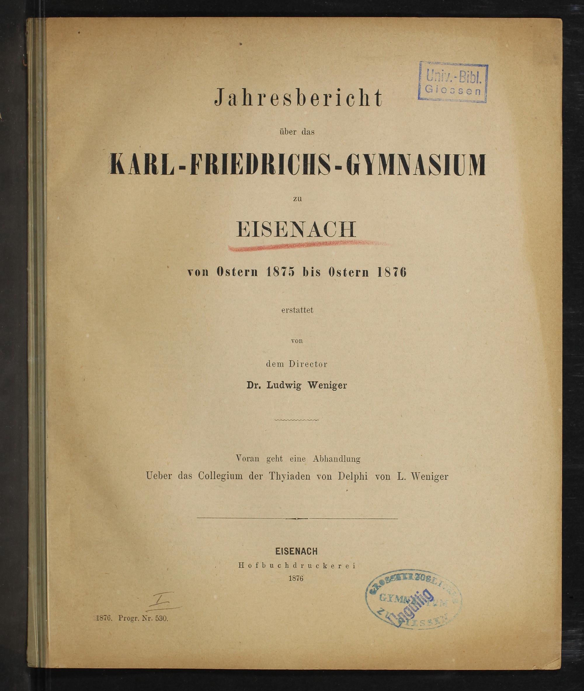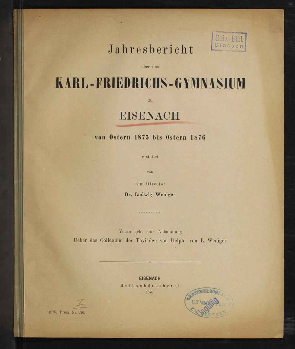 Jahres-Bericht über das Karl-Friedrich-Gymnasium zu Eisenach