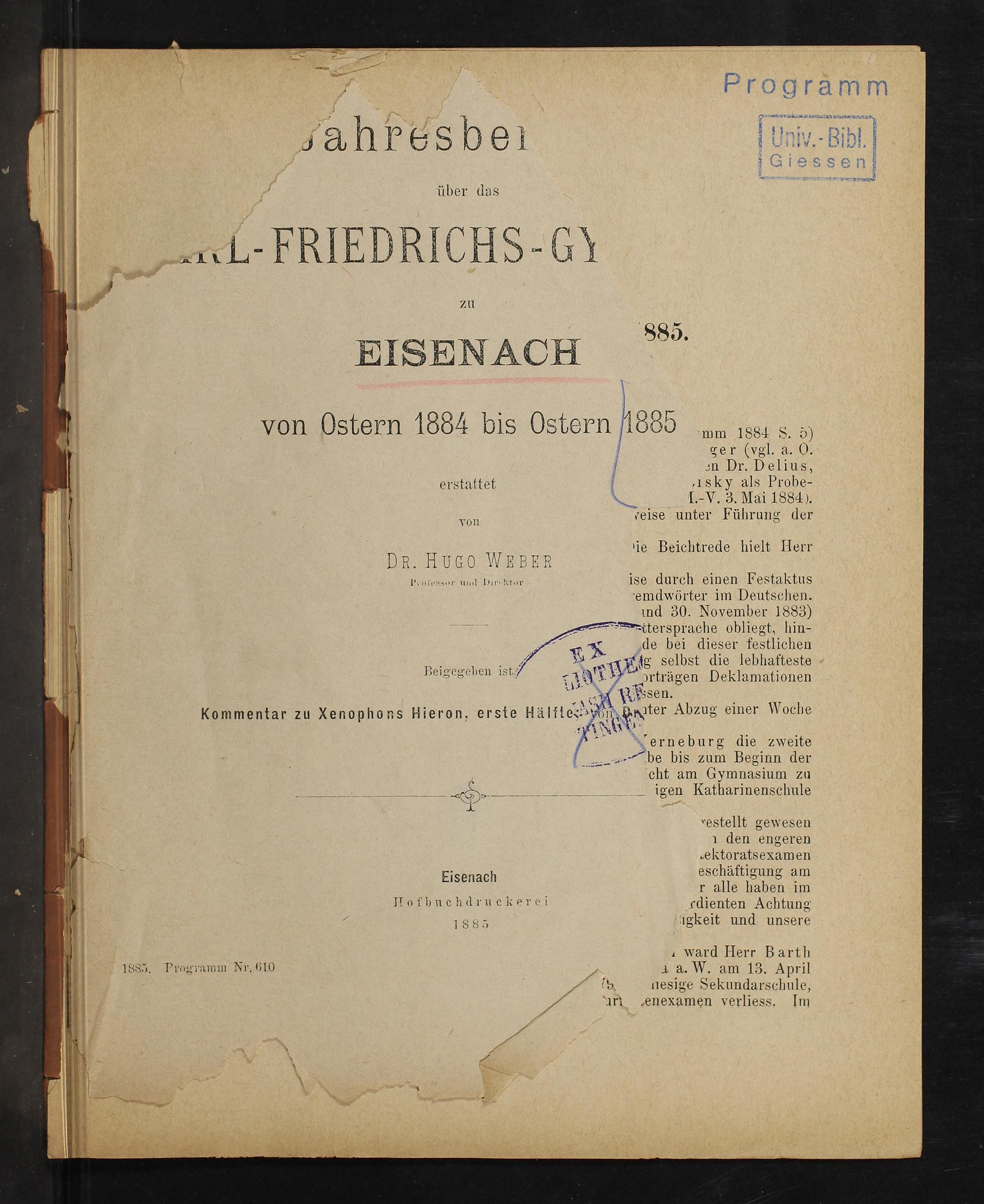 Jahres-Bericht über das Karl-Friedrich-Gymnasium zu Eisenach