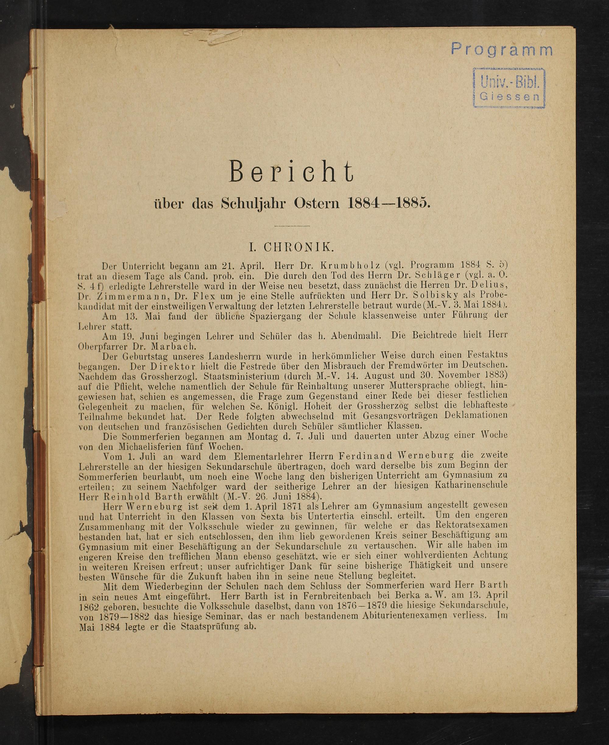 Jahres-Bericht über das Karl-Friedrich-Gymnasium zu Eisenach
