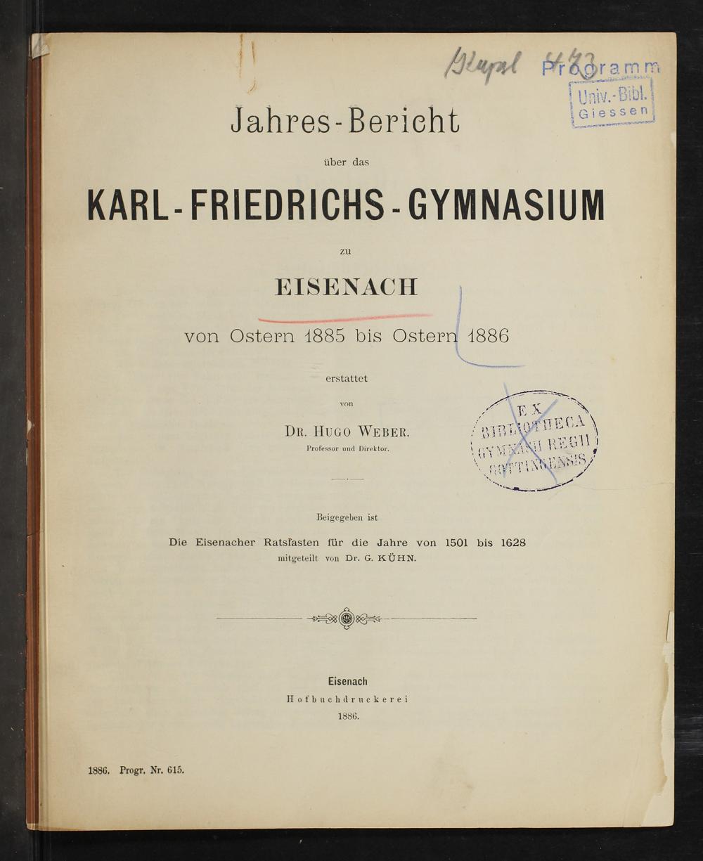 Jahres-Bericht über das Karl-Friedrich-Gymnasium zu Eisenach