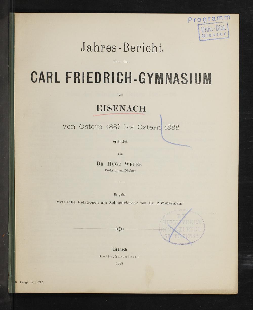 Jahres-Bericht über das Karl-Friedrich-Gymnasium zu Eisenach