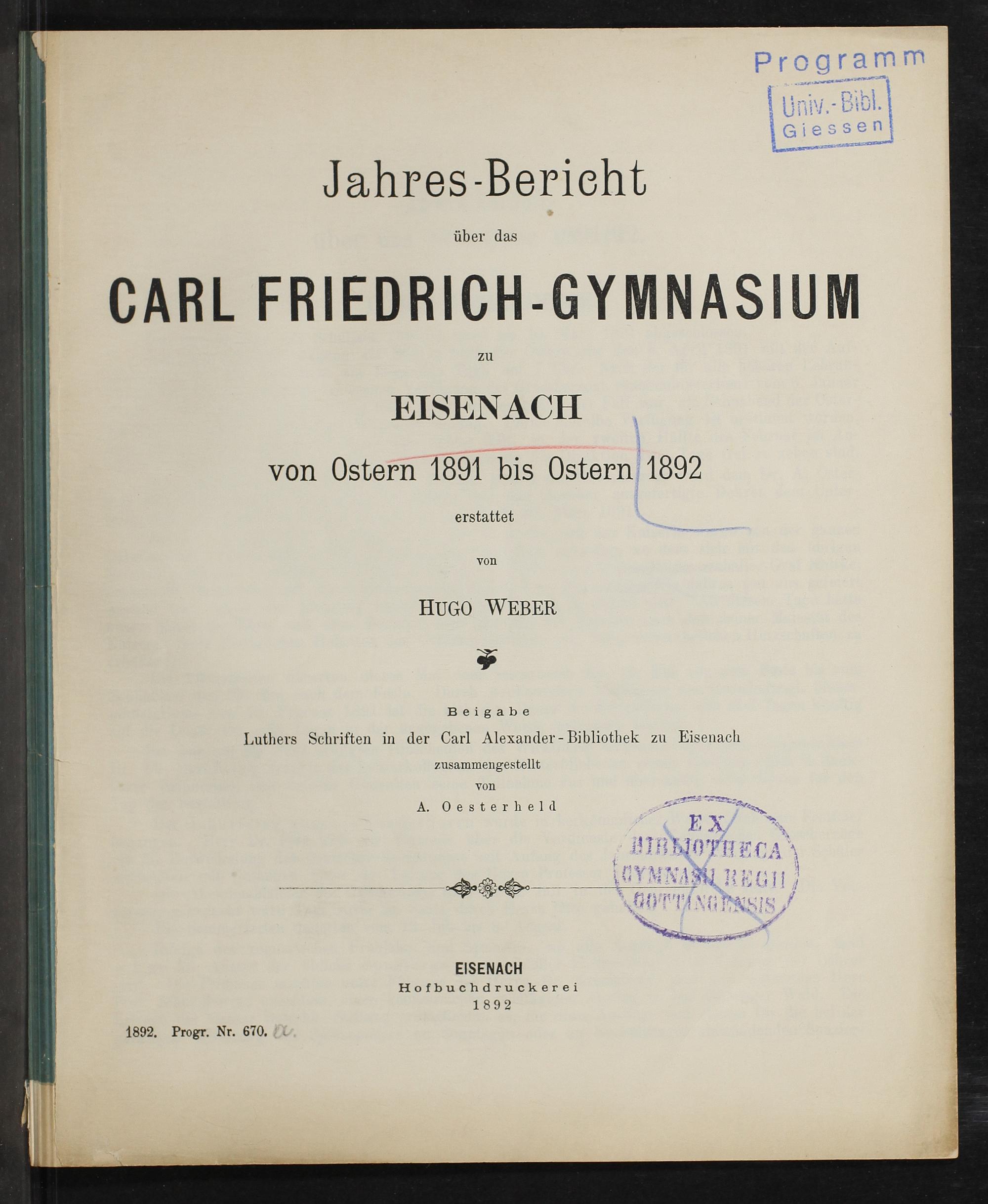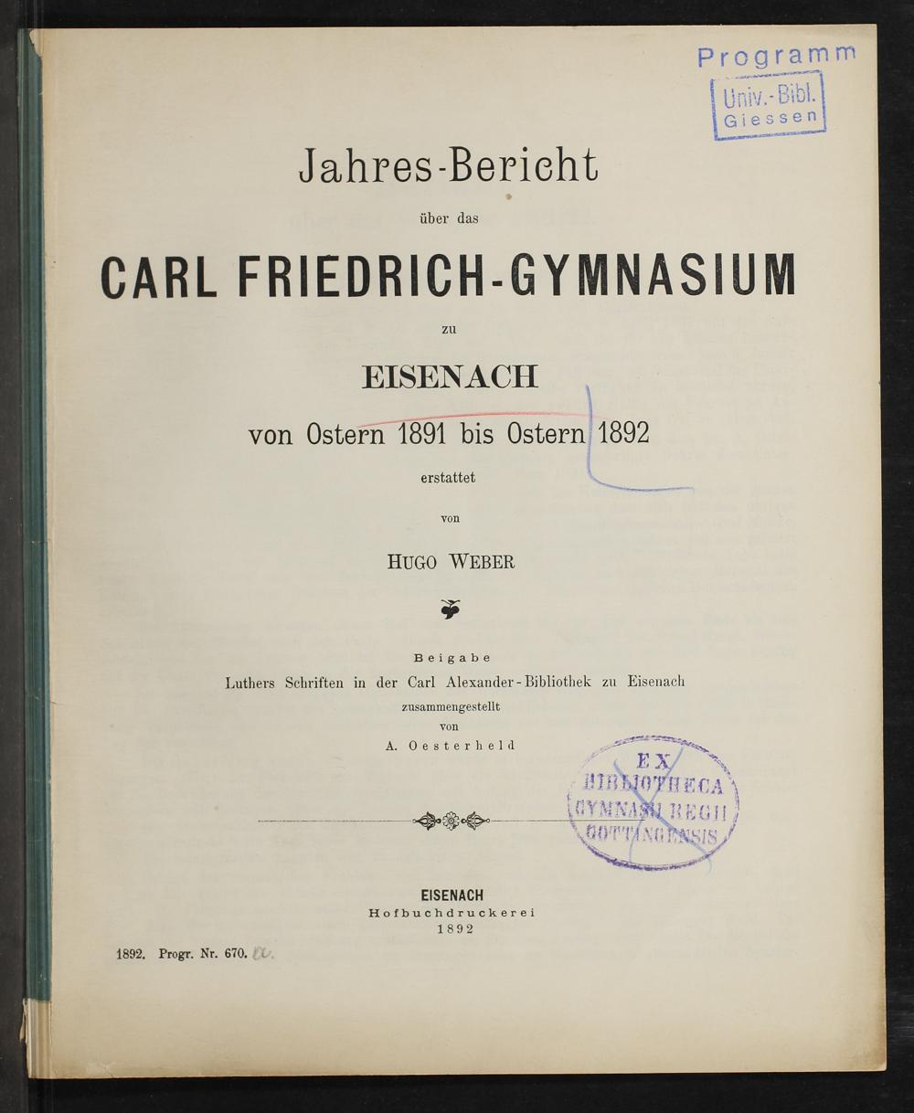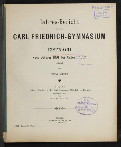 Jahres-Bericht über das Karl-Friedrich-Gymnasium zu Eisenach