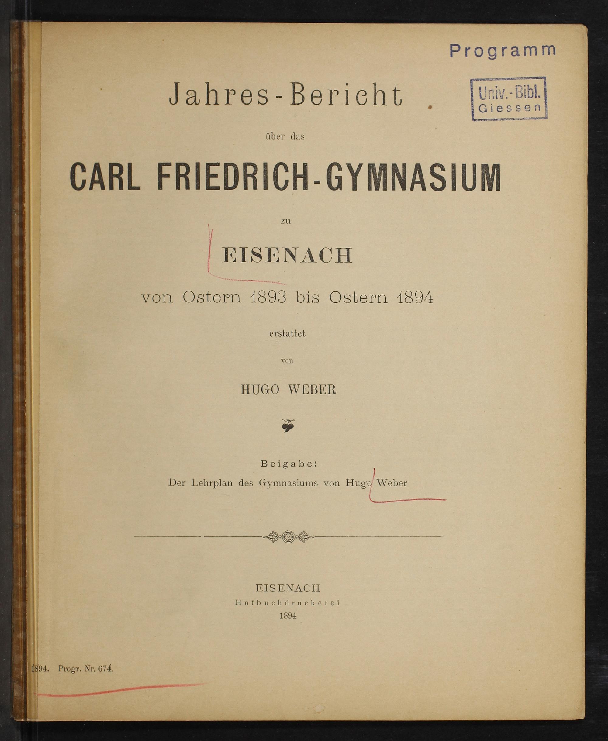 Jahres-Bericht über das Karl-Friedrich-Gymnasium zu Eisenach