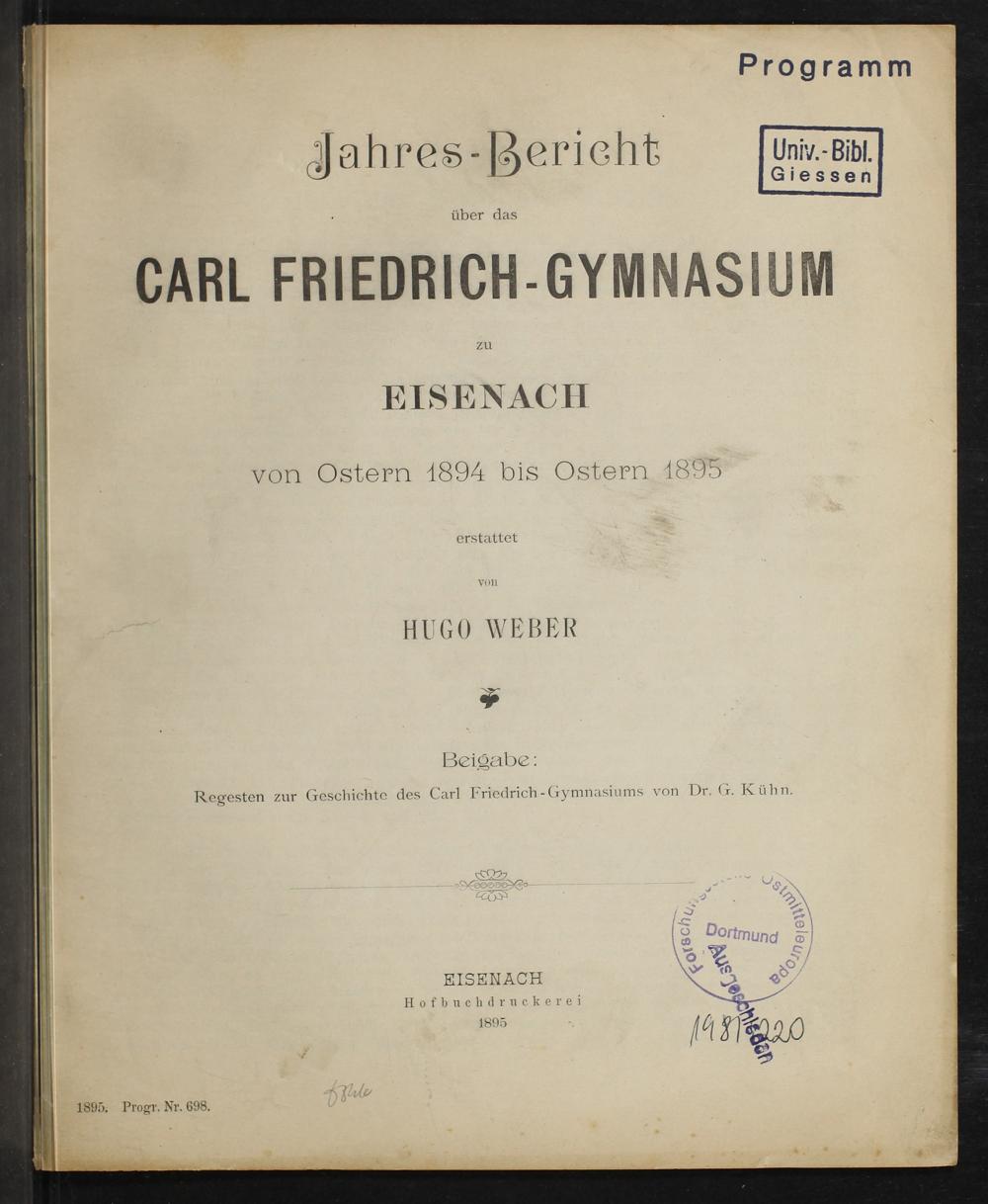 Jahres-Bericht über das Karl-Friedrich-Gymnasium zu Eisenach