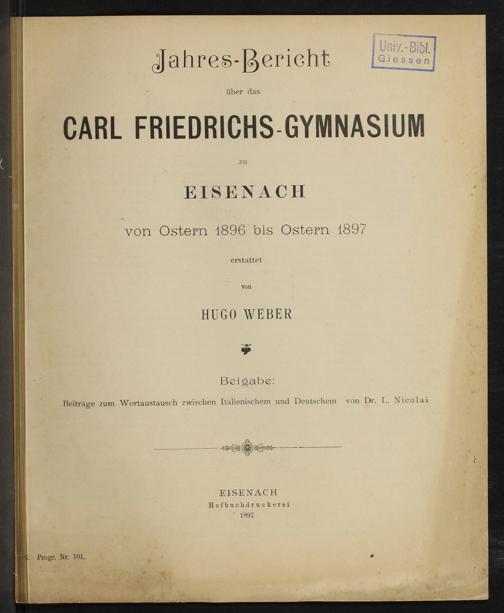 Jahres-Bericht über das Karl-Friedrich-Gymnasium zu Eisenach