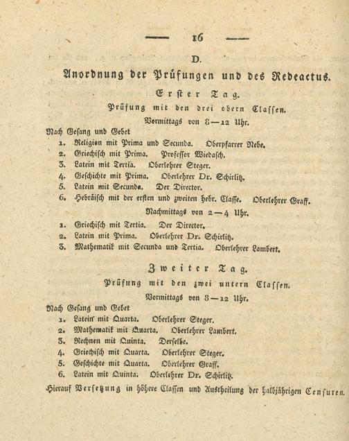 Zu den öffentlichen Prüfungen und Redeübungen der Schüler des Königlichen Gymnasiums zu Wetzlar ... ladet ... hochachtungsvoll ein die Direction