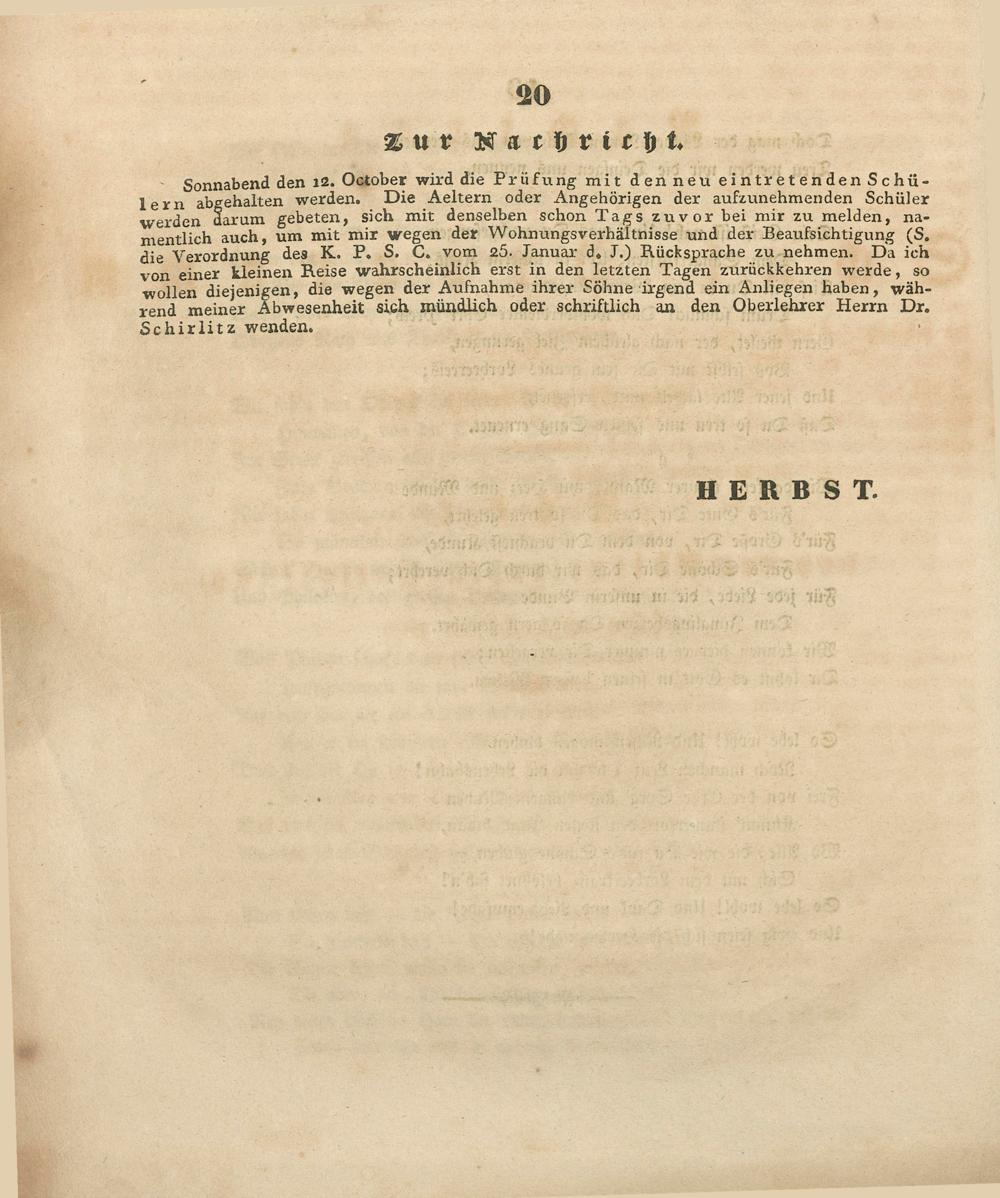 Zu den öffentlichen Prüfungen und Redeübungen der Schüler des Königlichen Gymnasiums zu Wetzlar ... ladet ... hochachtungsvoll ein die Direction