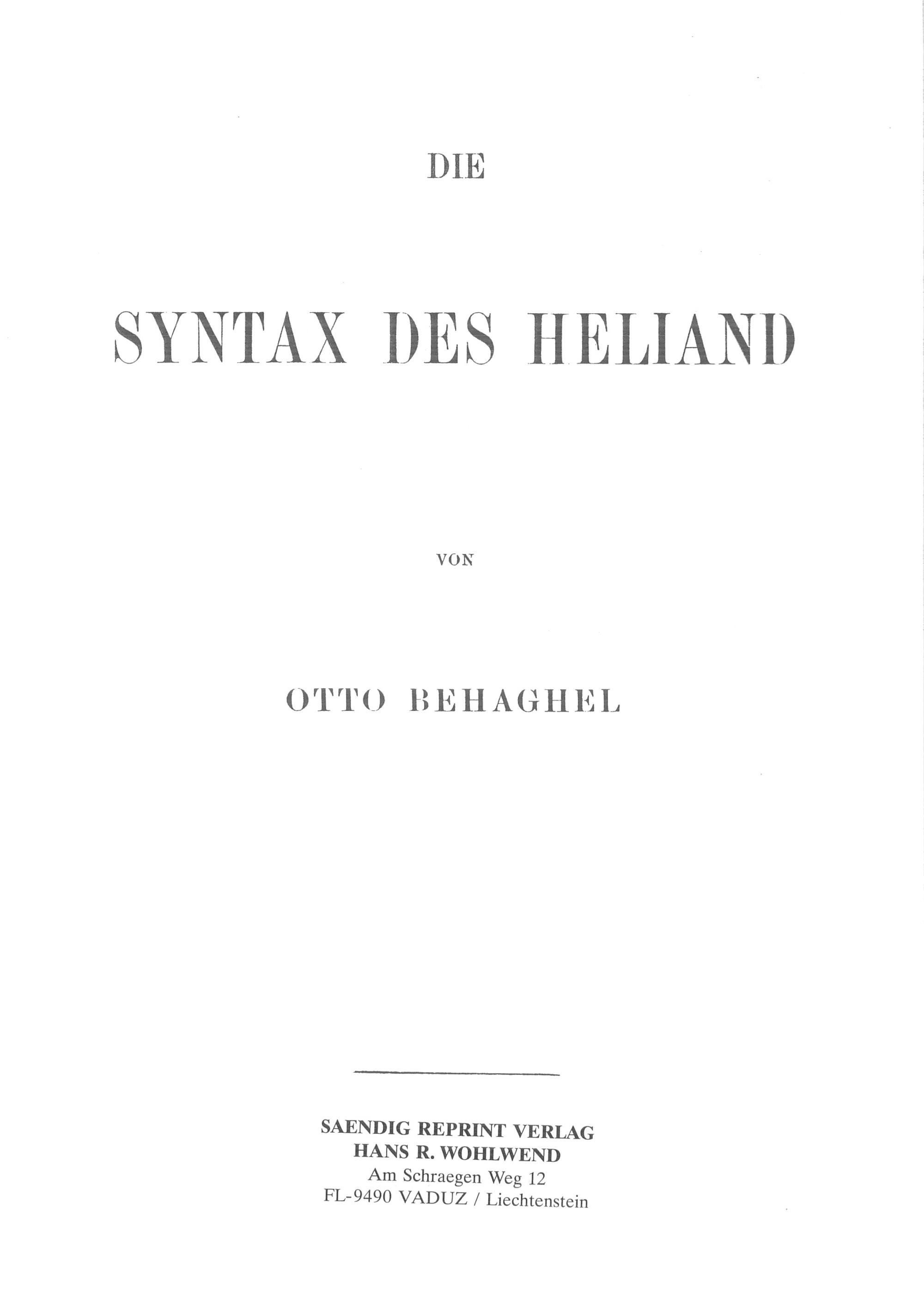 Die Syntax des Heliand / von Otto Behaghel