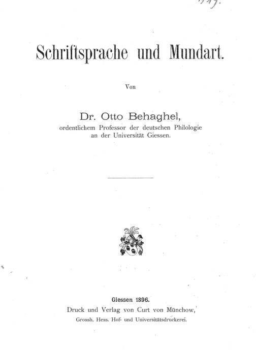 Schriftsprache und Mundart : Akademische Rede ... am 1. Juli 1896 / gehalten von Otto Behaghel