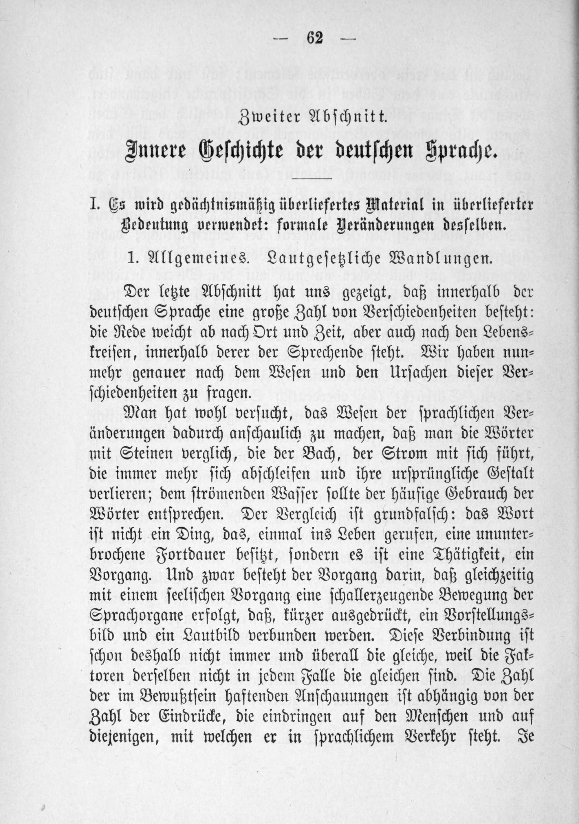 Zweiter Abschnitt, Innere Geschichte der deutschen Sprache S. 62
