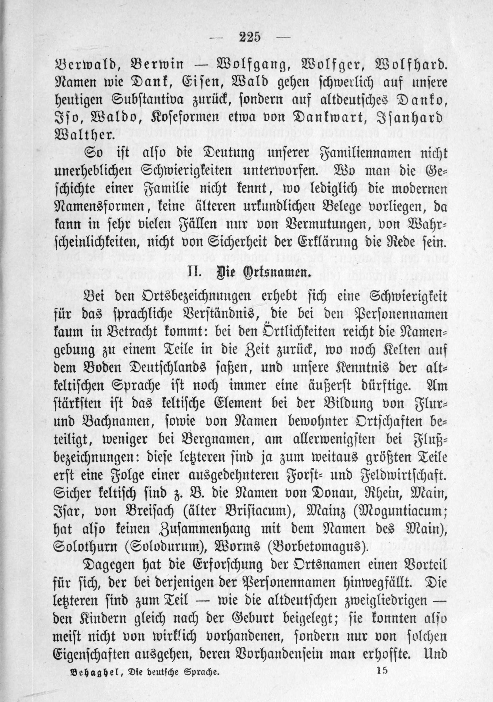 II. Die Ortsnamen S. 225