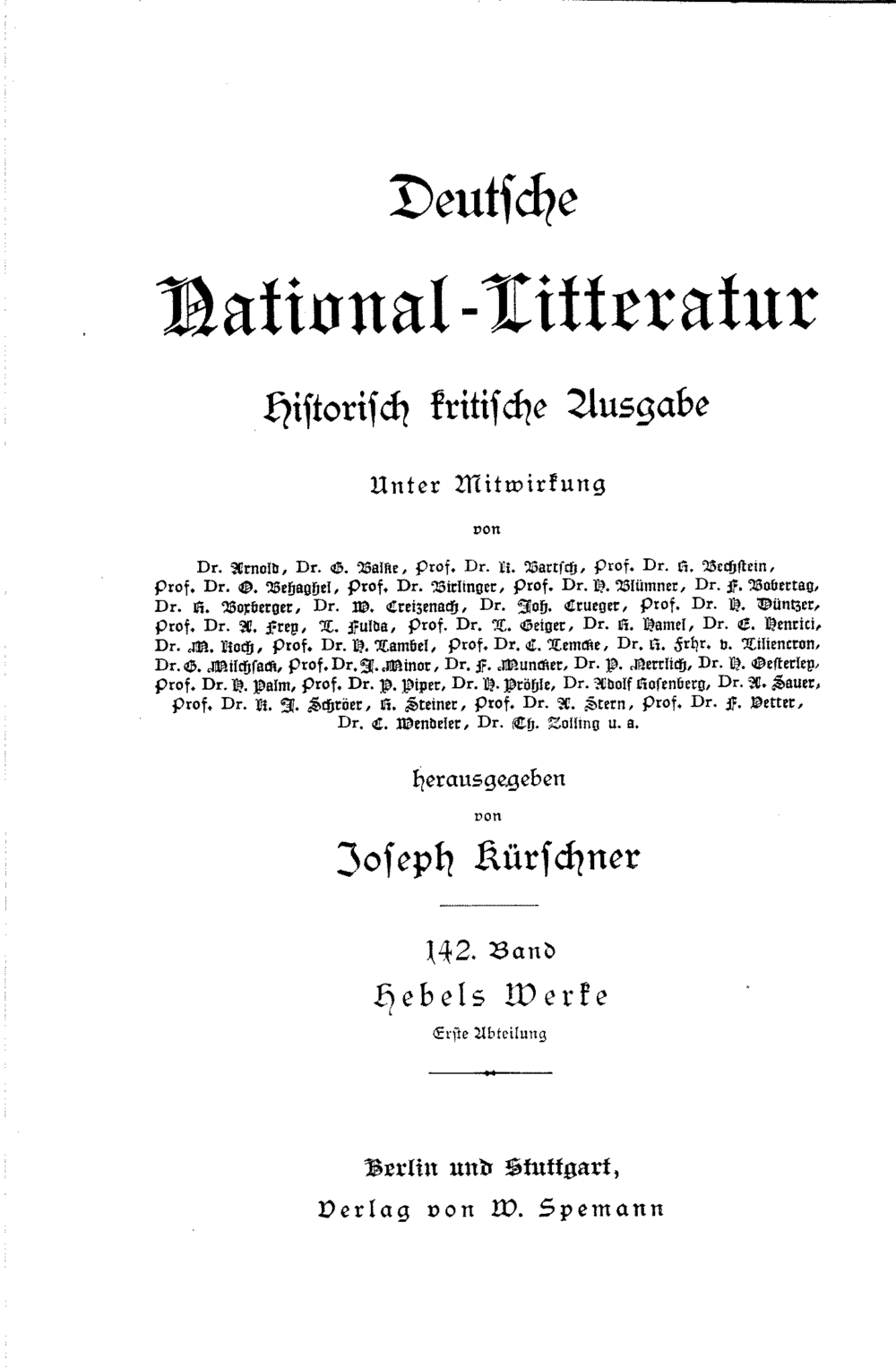 142, Hebels Werke : Abt. 1 ; T. 1 (1883) Allemannische Gedichte / herausgegeben von O. Behaghel