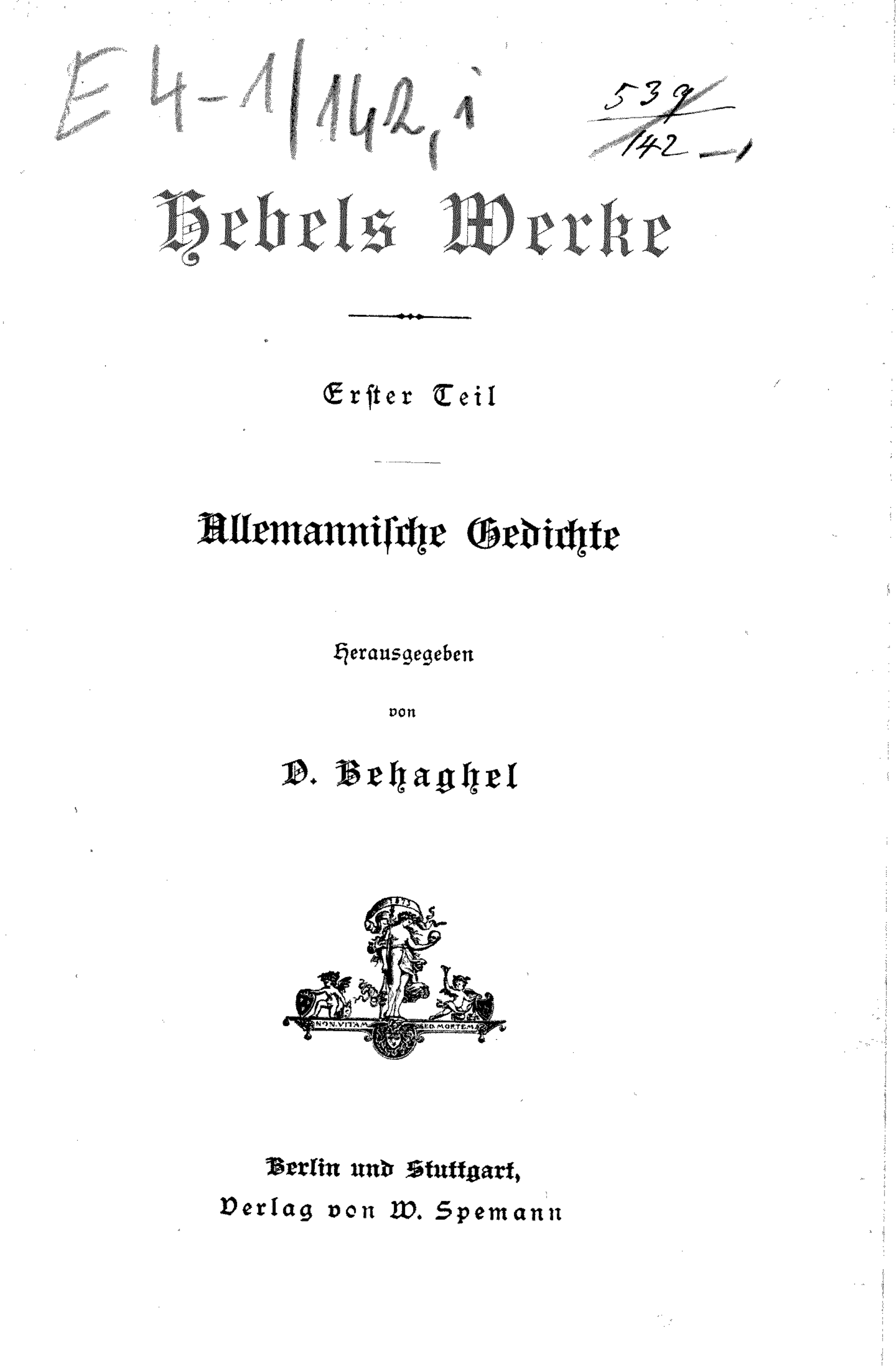 142, Hebels Werke : Abt. 1 ; T. 1 (1883) Allemannische Gedichte / herausgegeben von O. Behaghel