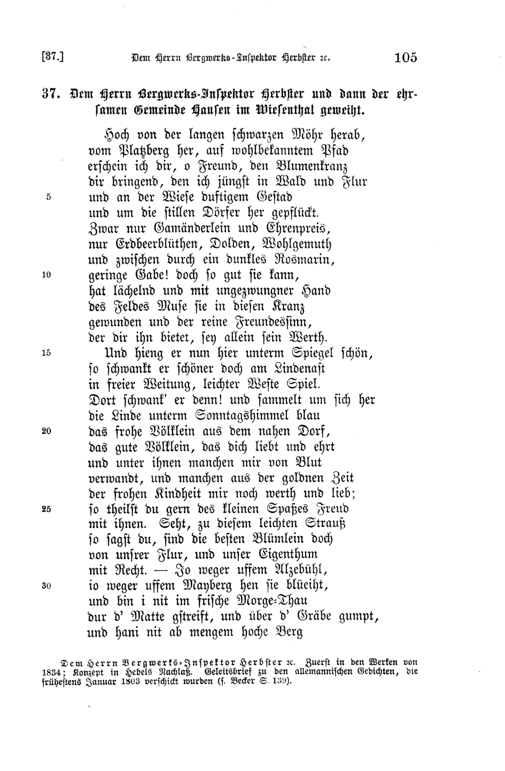 142, Hebels Werke : Abt. 1 ; T. 1 (1883) Allemannische Gedichte / herausgegeben von O. Behaghel