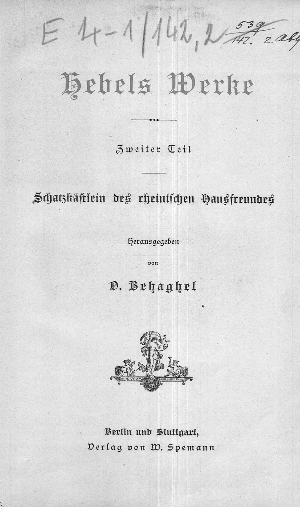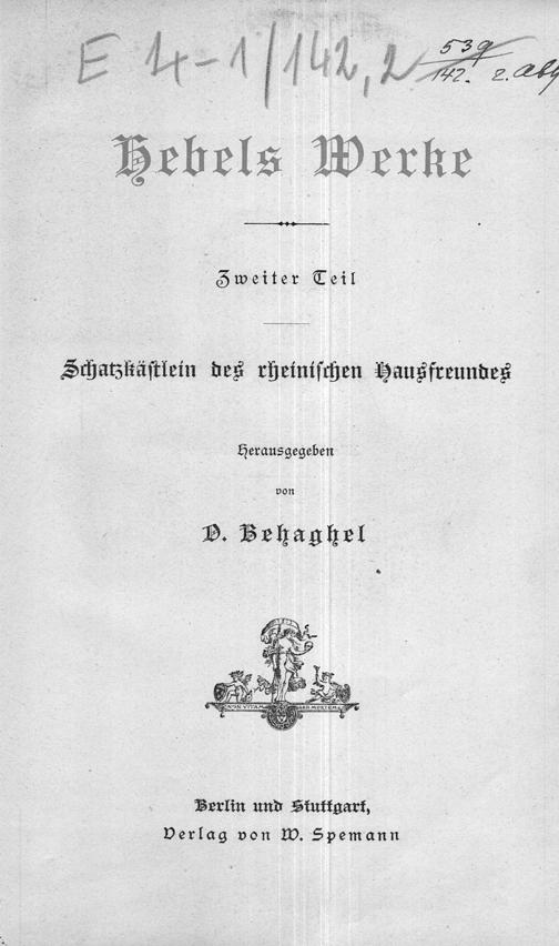 142, Hebels Werke : Abt. 2 ; T. 2 (1883) Schatzkästlein des rheinischen Hausfreundes / herausgegeben von O. Behaghel
