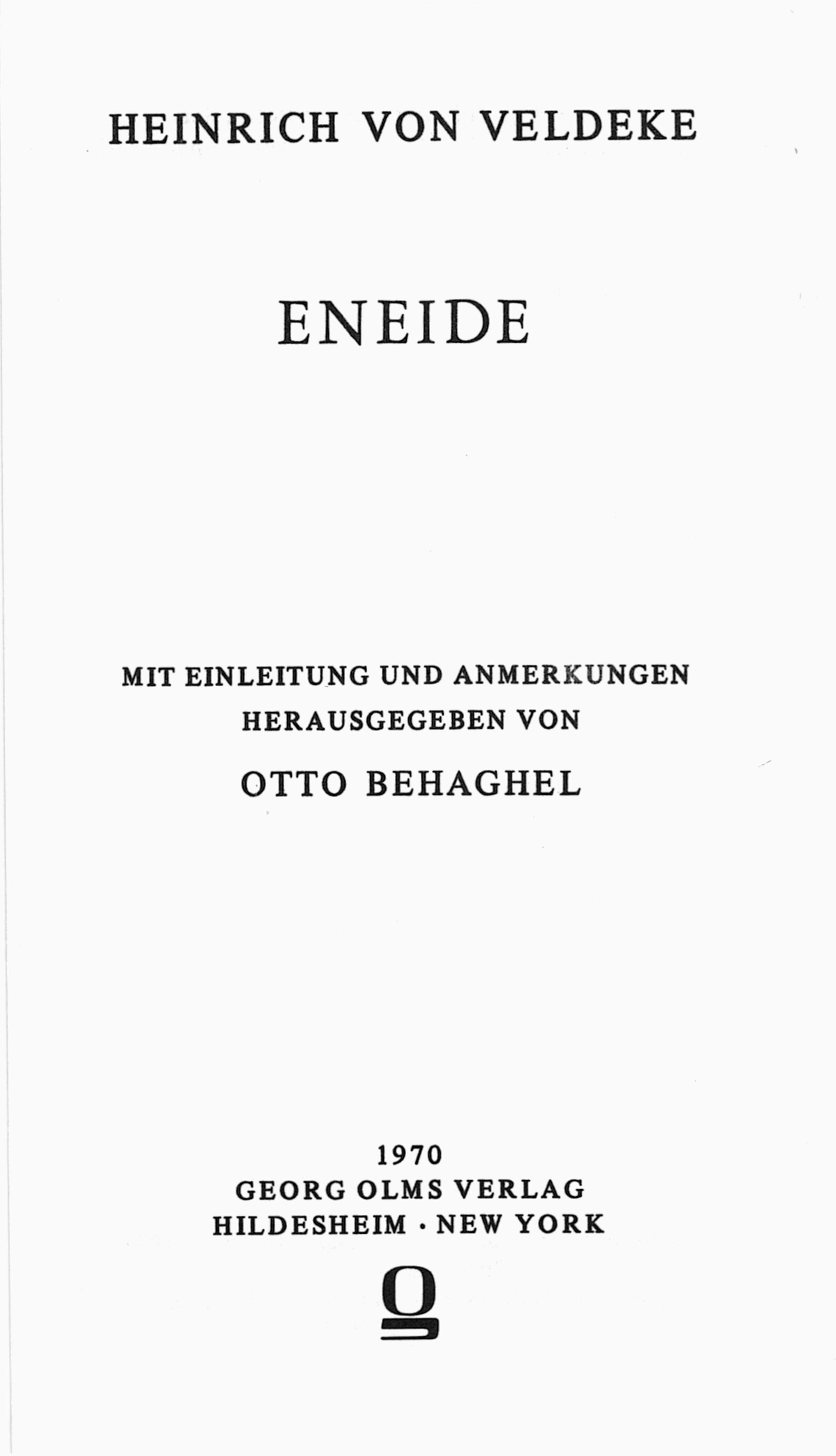 Eneide / Heinrich von Veldeke : mit Einleitung und Anmerkungen hrerausgegeben von Otto Behaghel