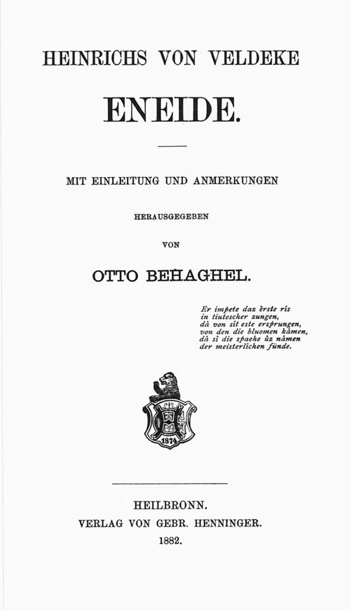 Eneide / Heinrich von Veldeke : mit Einleitung und Anmerkungen hrerausgegeben von Otto Behaghel