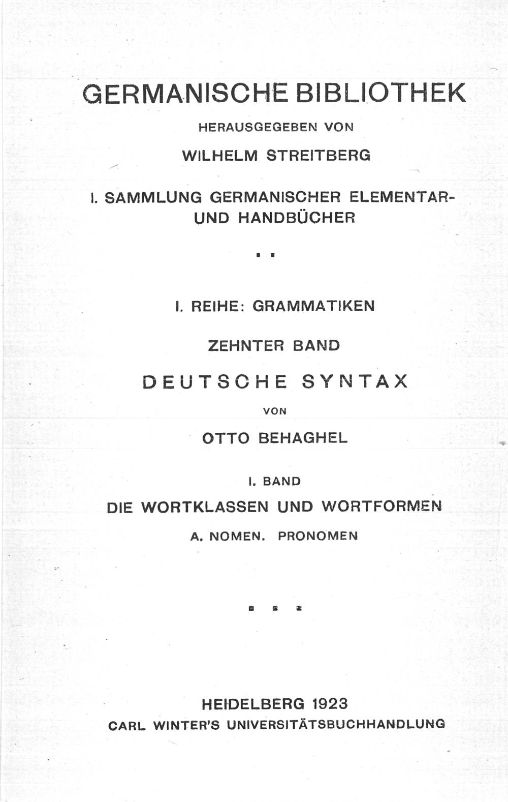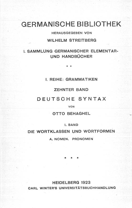 1 (1923) Die Wortklassen und Wortformen : A. Nomen, Pronomen / Otto Behaghel