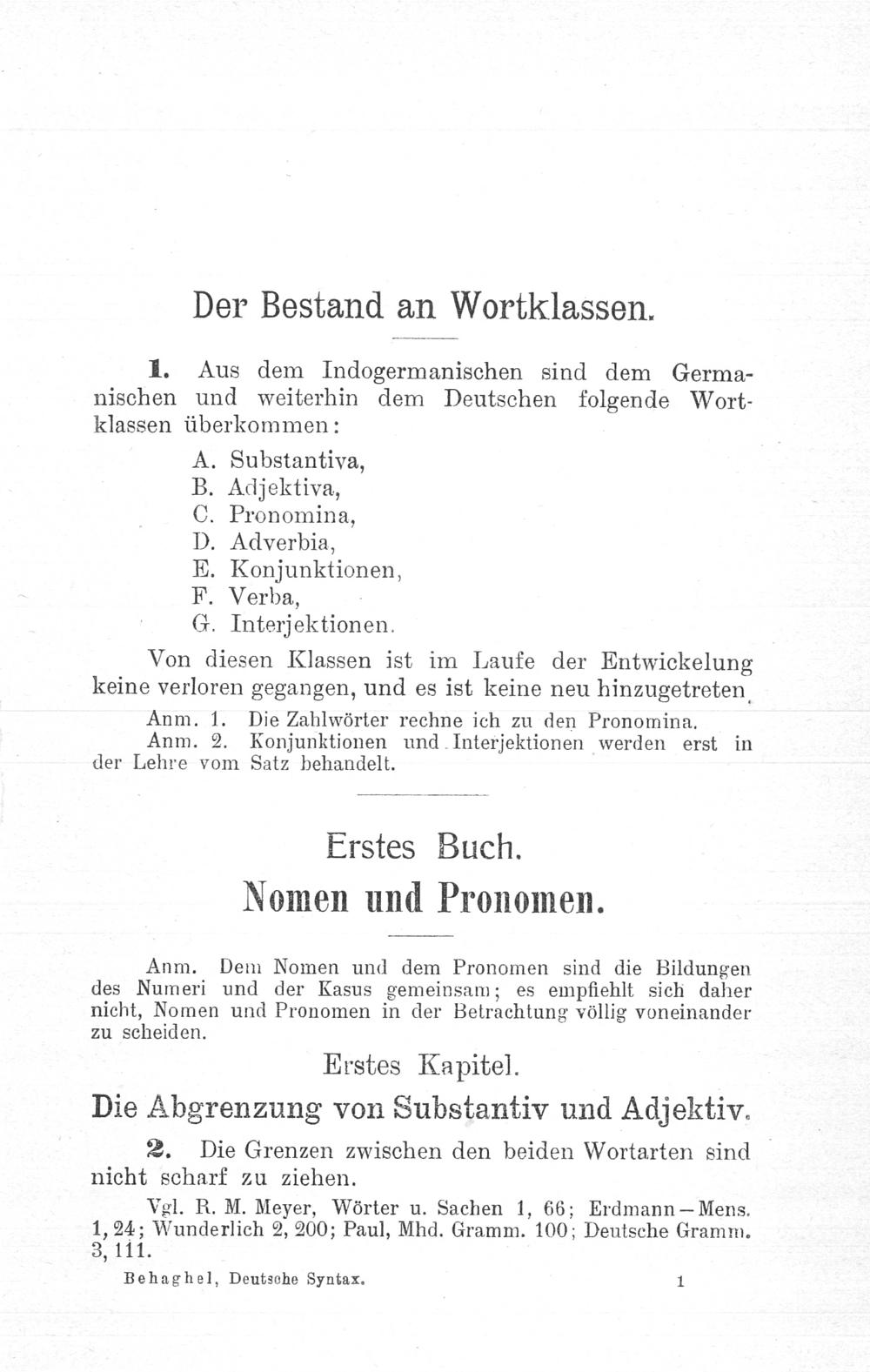 1 (1923) Die Wortklassen und Wortformen : A. Nomen, Pronomen / Otto Behaghel