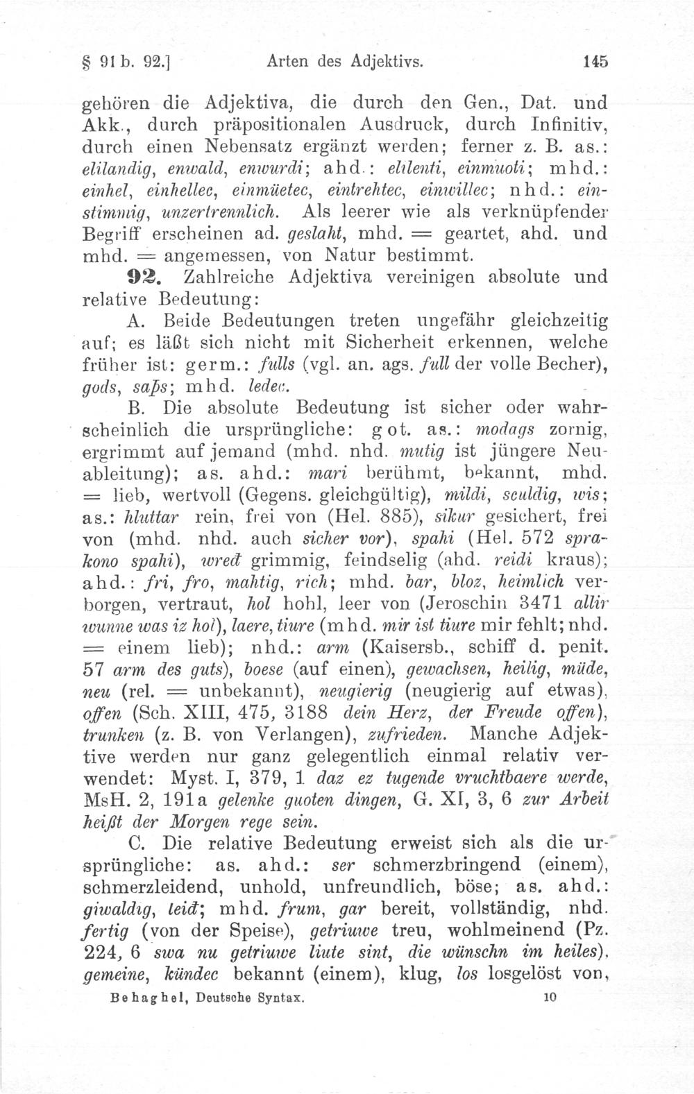 1 (1923) Die Wortklassen und Wortformen : A. Nomen, Pronomen / Otto Behaghel