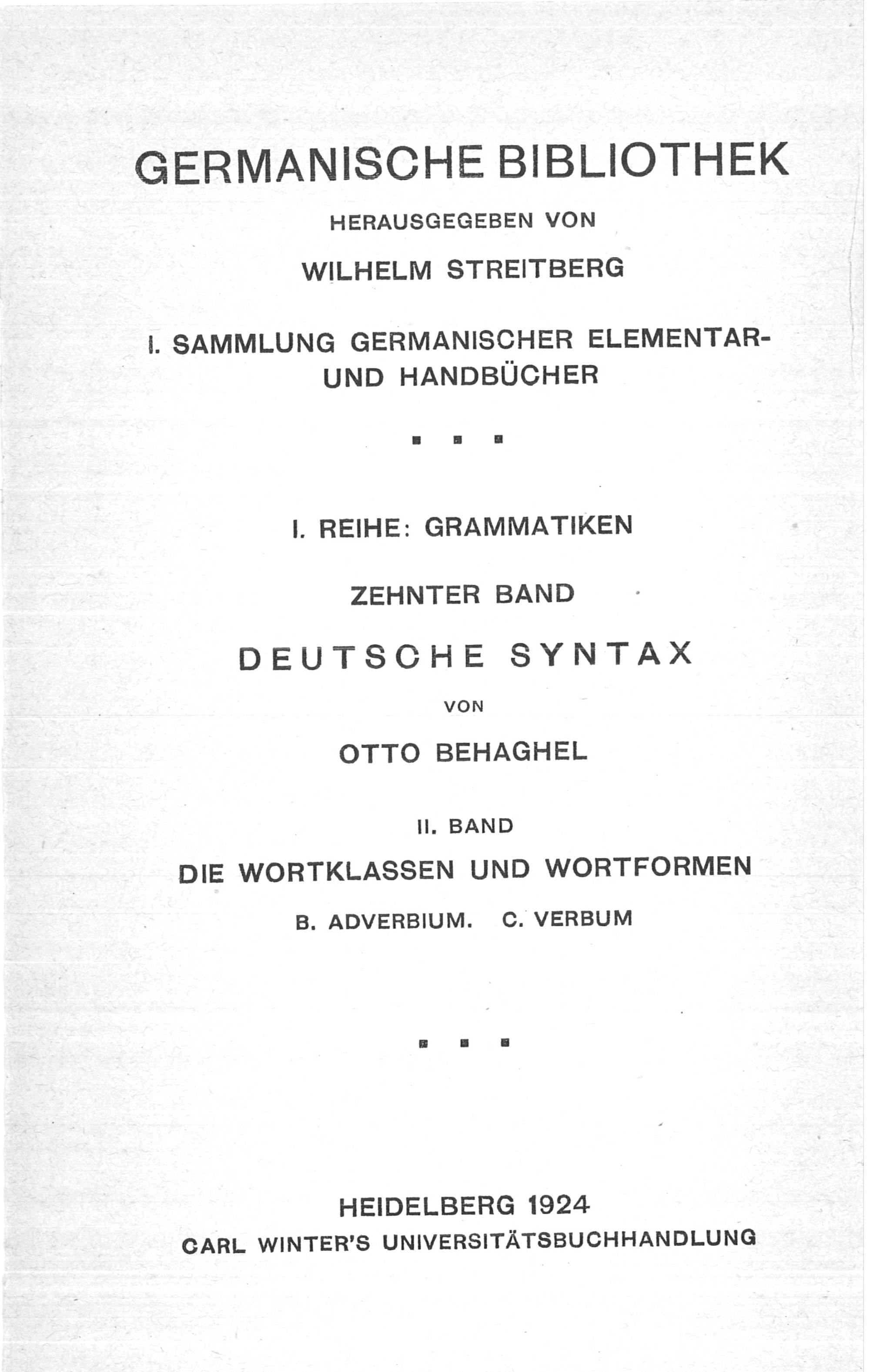 2 (1924) Die Wortklassen und Wortformen : B. Adverbium, C. Verbum